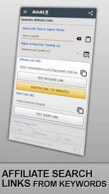 Create affiliate links, amzn.to short affiliate links, HTML affiliate links, BB code affiliate links... Share direct with your socials... And more.