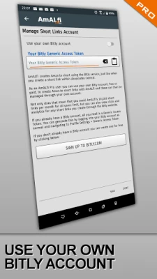 IMPORTANT NOTE: An AmALfi Pro upgrade alone will not get you more short links allowance. You must also create your own Bitly account (a free Bitly account will work) and configure AmALfi to use that - see https://amalfi.nooriginalthought.com/howTo#useYourOwnBitlyAccount for how to do this.