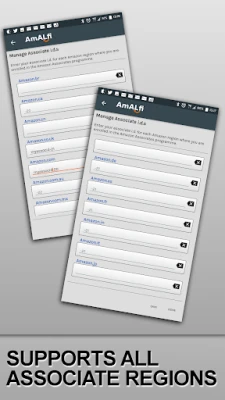 AmALfi supports ALL current Amazon™ Associates scheme regions and if you operate in multiple regions it can automatically select the corresponding associates tracking ID for the region you are promoting.