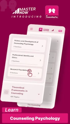 • Structured Content: Learn Counseling Psychology step-by-step, from foundational theories to advanced techniques.
