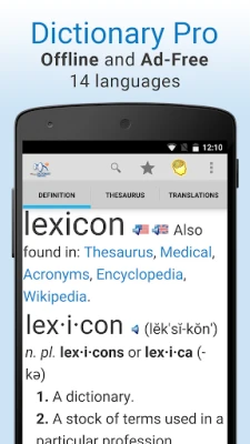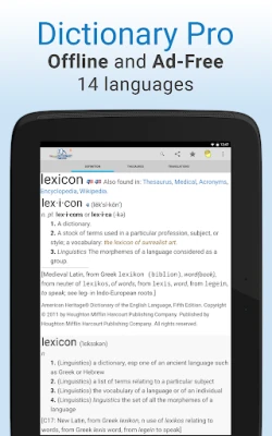 Dictionary Pro is the premium version of The Free Dictionary app, featuring offline dictionary and thesaurus content with NO ads. Here's what you get: