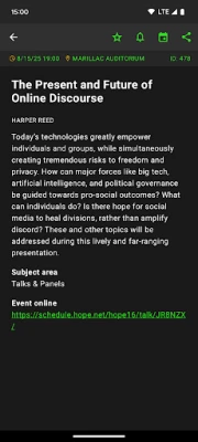 💡 Questions regarding the content can only be answered by the HOPE content team. This app simply offers a way to consume and personalize the conference schedule.