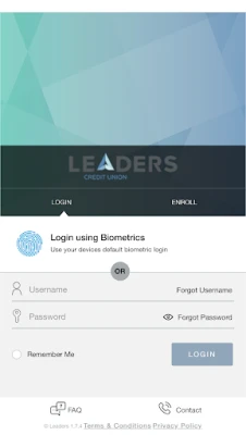 No personal information is stored on the device. To download the Leaders Credit Union mobile app and view your account and loan balances, transaction histories, and make transfers and pay bills, please search “Leaders Credit Union” in your app store.