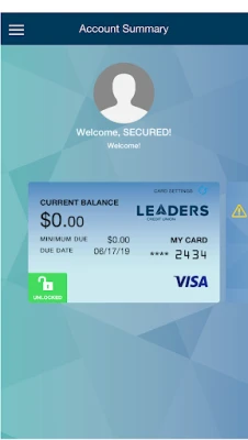 Enjoy easy and on-the-go management of your cards with the Leaders Credit Union Card app. This app offers a fresh way to: • View recent and pending transactions. • View next payment amount and due date. • Make a payment to your card. • Report a card lost or stolen. • Activate a card.