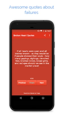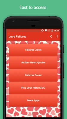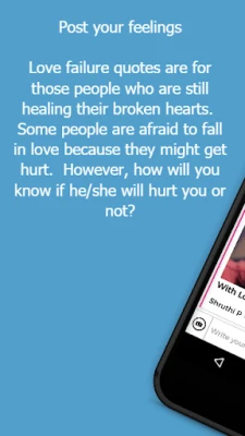Love Failures is an app for sharing love tragedy feelings and the user can view the messages made by others. Also in the app, users can view and share broken heart quotes