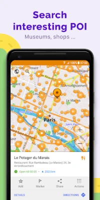 • Choice of places to be displayed on the map: attractions, food, health and more;