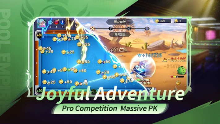 3.Pool Adventure: A unique blend of pool and adventure, featuring special skill balls (Lightning Ball, Bomb Ball, Laser Ball) to skyrocket your score.