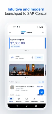 If you use Concur® Travel, Concur® Expense, or Concur® Invoice at work, then download this companion app to your Android to manage your travel and expenses when you’re on the go!
