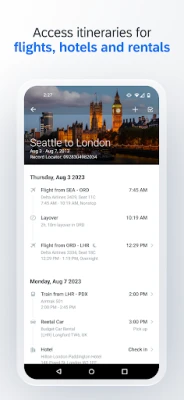 • Integrate your itinerary with TripIt to get real-time travel alerts and updates
