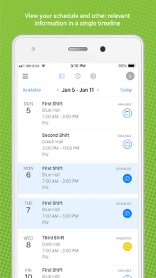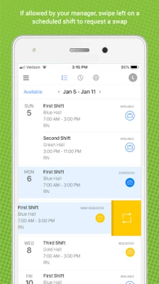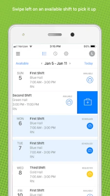 - Pick up or request shifts