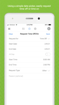 - Request time off or time on