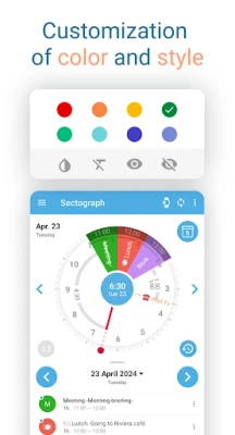 ✔ Daily scheduling and visual timing. Track your daily tasks, agendas, appointments, and events in Sectograph, and at any time, find out how much time is left until the end of the current event and the start of the next one. Don't be late.