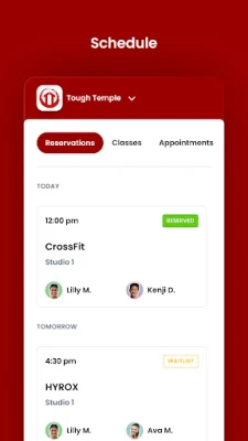 For members of Tough Temple to reserve their place in a class, sign up for gym events, and general account management like updating headshots and credit card on file.