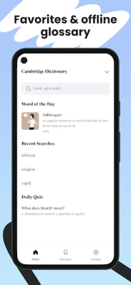 • Word of the Day: a fresh term with context sentence and pronunciation lands on your home screen daily.