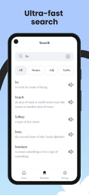 • One-tap search: type or paste a word and the result appears as soon as you hit Go.